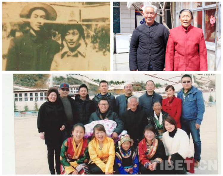 △圖為一個(gè)典型的“團(tuán)結(jié)族”幸福家庭。1959年,薄金清隨部隊(duì)來(lái)到西藏,轉(zhuǎn)業(yè)后到西藏自治區(qū)氣象局工作,1960年與藏族同事、大學(xué)生中巴桑結(jié)婚。而今,全家四世同堂生活在拉薩,20多口人中有藏、漢、回三個(gè)民族。左上為薄金清和中巴桑年輕時(shí)的合影,右上為薄金清和中巴桑2017年時(shí)的合影,下圖為薄金清和中巴桑一家全家福(圖片來(lái)源于央視、西藏發(fā)布、拉薩文明網(wǎng))