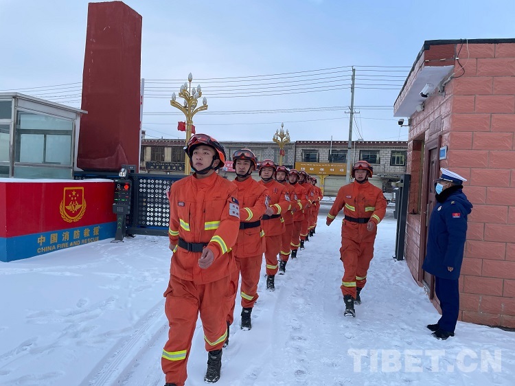中國西藏網(wǎng)訊 晚上七點鐘,薛太文還在哨位上堅守著,他是那曲市森林消防大隊去年下隊的新消防員,這是他在這里過的第一個春節(jié)。警衛(wèi)室外面是零下三十七度的低溫,室內在暖氣的包圍下溫暖如同春天?!鞍謰屵@會在干啥呢?應該是在看電視吧,奶奶身體不知道這兩天怎么樣,等會下崗了給他們打個視頻吧……”正想著,大門外的車輛鳴號聲把他的思緒從家里拉了回來。薛太文趕忙沖出溫暖的警衛(wèi)室,在微微的細雪中打開了大門,板正地站好敬禮——在城區(qū)周邊巡查的隊友們回來了。