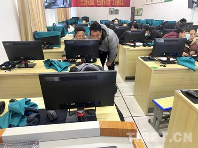 圖為西藏自治區(qū)那曲市比如縣達(dá)塘鄉(xiāng)的學(xué)生家長(zhǎng)們和浙江省紹興市上虞區(qū)的學(xué)生家長(zhǎng)們一起通過(guò)互聯(lián)網(wǎng)開(kāi)“我為家鄉(xiāng)代言”云主題班會(huì) 攝影:次仁達(dá)吉
