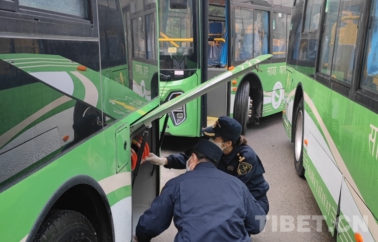 圖為拉薩海關所屬聶拉木海關監(jiān)管驗放出口國產新能源公交車 由拉薩海關供圖
