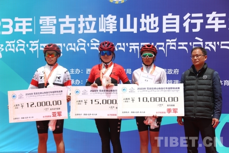圖為獲得女子精英組比賽冠軍老隊員車隊選手白瑪央吉、亞軍區(qū)體校隊選手曲美巴措、季軍區(qū)體校隊選手索朗益西 攝影:德吉卓瑪
