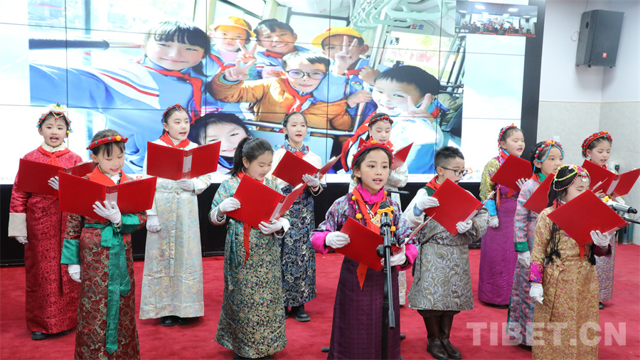 圖為拉薩市實驗小學和北京市海淀區(qū)中關村第二小學共同舉辦的“銘記歷史感黨恩 做新時代好少年”暨“西藏百萬農奴解放紀念日誦讀歌詠活動”