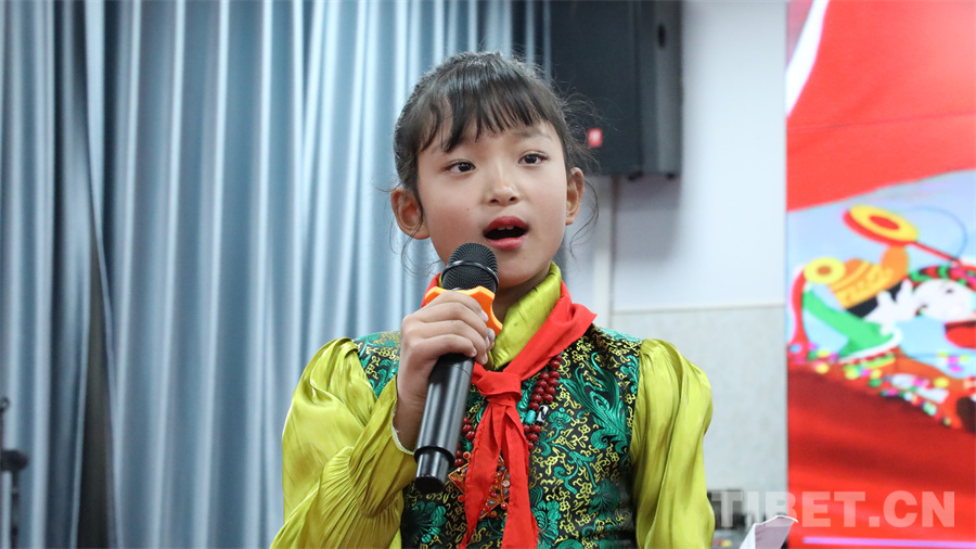 圖為拉薩市實驗小學賜單央吉同學誦讀《童心永向黨 童謠頌黨恩》