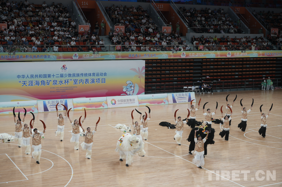 中國西藏網(wǎng)訊 11月24日,第十二屆全國少數(shù)民族傳統(tǒng)體育運(yùn)動(dòng)會(huì)表演項(xiàng)目(室內(nèi))在海南省三亞市體育中心體育館舉行。(中國西藏網(wǎng) 記者/蘇洋)