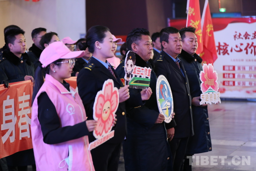 圖為拉薩車站春運(yùn)首日服務(wù)宣誓活動(dòng)現(xiàn)場(chǎng)
