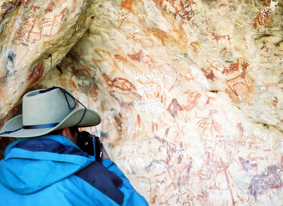 其多山洞穴巖畫多使用黑色礦物顏料,描繪的大多是動物、人物、符號等圖像,內(nèi)容十分豐富。