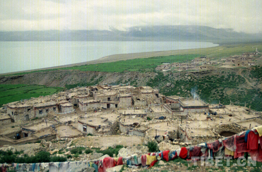 圖為當惹雍錯湖畔的尼瑪縣文部鄉(xiāng)南村(唐召明1987年攝)