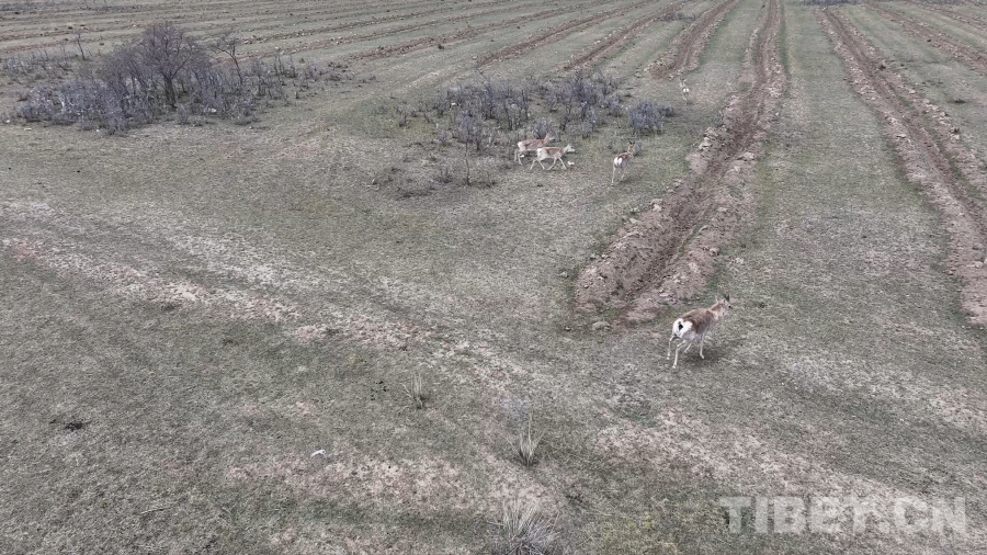 圖為無(wú)人機(jī)捕捉到的珍貴的野生普式原羚影像,它們的夏季被毛呈棕黃色,可以較好地融入周邊環(huán)境,同時(shí)性格警覺(jué),對(duì)風(fēng)吹草動(dòng)都很敏感 青海省文旅廳供圖