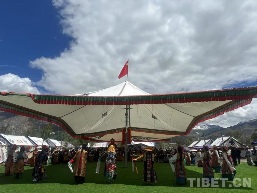 中國(guó)西藏網(wǎng)訊 鼓鈸聲穿透晨霧,藍(lán)面具在河畔的陽光下流轉(zhuǎn)著金屬般的光澤。7月16日,日喀則市南木林縣非遺林公園內(nèi),一場(chǎng)跨越七百年的湘巴藏戲展演正酣。臺(tái)上,11支藏戲隊(duì)輪番演繹《智美更登》《諾桑法王》等藏戲經(jīng)典劇目,古老唱腔與現(xiàn)代舞美交相輝映;臺(tái)下,千余名群眾凝神駐足,酥油茶的醇厚香氣伴著此起彼伏的喝彩裊裊升騰——這是南木林獻(xiàn)給西藏自治區(qū)成立60周年的非遺厚禮,更是“藏戲之鄉(xiāng)”文化基因的鮮活注腳。