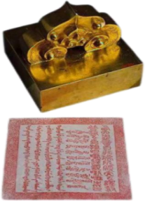 展覽中,37道敕封圣旨與13枚官印沿玻璃展柜鋪展,時(shí)間跨度從元泰定至清光緒,封號(hào)涵蓋“白蘭王”“萬(wàn)戶(hù)”“都指揮僉事”“國(guó)師”“大國(guó)師”“大寶法王”“闡教王”“闡化王”“輔教王”“贊善王”“班禪額爾德尼”等。在布展中,工作人員首創(chuàng)“混搭串聯(lián)”的展覽敘事,通過(guò)在不同朝代的皇宮家具上放置對(duì)應(yīng)朝代的皇帝治藏的圣旨與印章,闡明元明清時(shí)期中央政府對(duì)西藏實(shí)施的有效行政管轄。