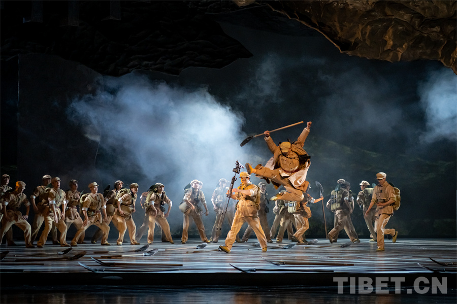 《昆侖問(wèn)道》以青藏公路建設(shè)為宏大背景,講述了道班工人一家三人在時(shí)代浪潮中守護(hù)這條生命線的傳奇故事。通過(guò)當(dāng)代舞語(yǔ)匯與現(xiàn)實(shí)主義敘事的創(chuàng)新融合,以極具爆發(fā)力的肢體語(yǔ)言和時(shí)空交錯(cuò)的舞臺(tái)呈現(xiàn),生動(dòng)再現(xiàn)“一鍬一鎬筑天路”的艱苦卓絕和“一代一代守天路”的初心使命,讓跨越七十載的信仰力量直抵人心。