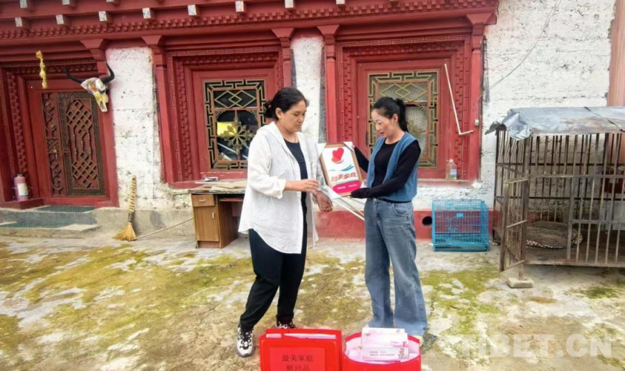 中國西藏網(wǎng)訊 近日,四川省甘孜藏族自治州得榮縣婦聯(lián)、縣文明辦工作人員來到太陽谷鎮(zhèn)松堆村,將州級“最美家庭”榮譽(yù)送到村民扎西拉姆家。這份榮譽(yù)不僅是對他們多年來在家風(fēng)建設(shè)、文化傳承、公益服務(wù)中突出表現(xiàn)的肯定,更讓新時(shí)代文明實(shí)踐的“種子”落地生根。