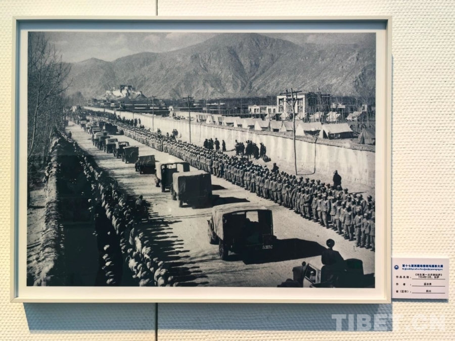 圖為第十七屆西藏珠穆朗瑪攝影大展所展出的《車隊第一次開到拉薩》(藍志貴 1954年12月拍攝)