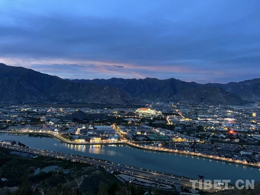 圖為夜幕下燈光逐漸亮起的拉薩城 攝影:趙振宇