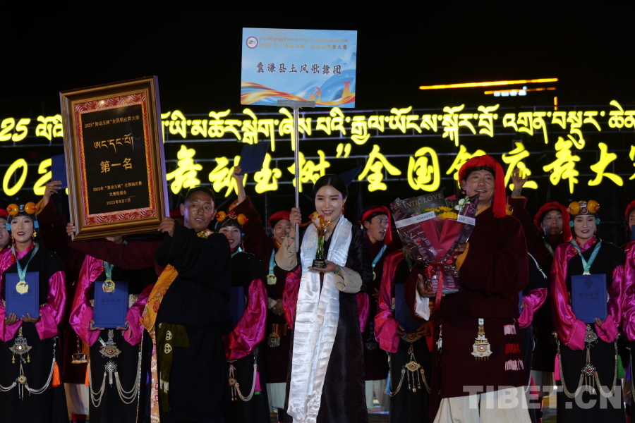 經(jīng)過(guò)激烈角逐,青海省玉樹(shù)州囊謙縣土風(fēng)歌舞團(tuán)摘得本次大賽的冠軍?!拔磥?lái),我們將帶著這份沉甸甸的榮譽(yù)繼續(xù)前行,用心打磨每一個(gè)動(dòng)作、每一段旋律,力求把最具民族韻味、最富感染力的鍋莊舞蹈作品,呈現(xiàn)給更多觀眾?!蹦抑t縣土風(fēng)歌舞團(tuán)團(tuán)長(zhǎng)才仁更尕獲獎(jiǎng)后的激動(dòng)之情溢于言表。