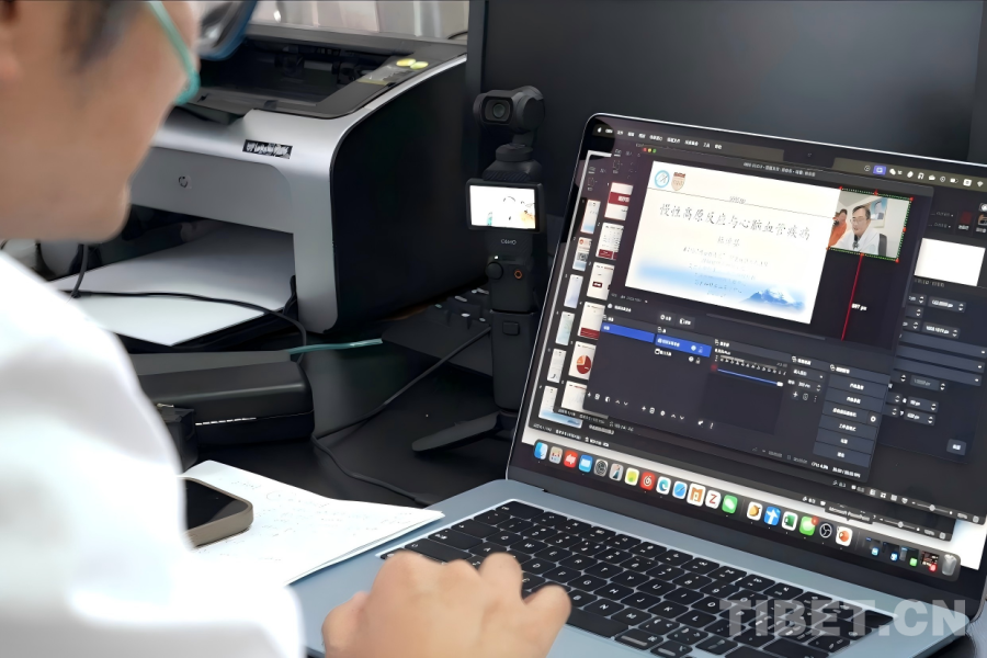 在阿里地區(qū)人民醫(yī)院的行政樓辦公室內(nèi),來(lái)自上海華山醫(yī)院神經(jīng)外科、作為第25批“博士服務(wù)團(tuán)”成員援藏的主治醫(yī)師杜倬嬰,正專注研究一項(xiàng)“新技術(shù)”。桌面上,一臺(tái)口袋相機(jī)運(yùn)行著,旁邊電腦屏幕上同步顯示相機(jī)所拍攝的畫面,同時(shí)呈現(xiàn)的還有一份關(guān)于高原反應(yīng)與心腦血管疾病的課程講義?!斑@是一套直播系統(tǒng),不過(guò)我現(xiàn)在還在學(xué)習(xí)怎么使用?!爆F(xiàn)任阿里地區(qū)人民醫(yī)院黨委委員、副院長(zhǎng)的杜倬嬰笑著展示初見雛形的成果。