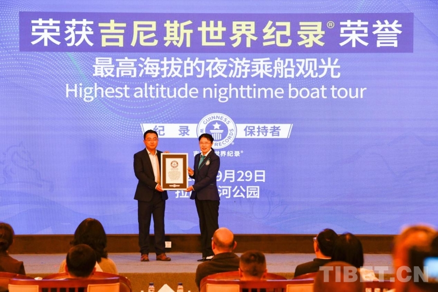 圖為“最高海拔的夜游乘船觀光”吉尼斯世界紀錄證書頒發(fā)現(xiàn)場 攝影:趙振宇