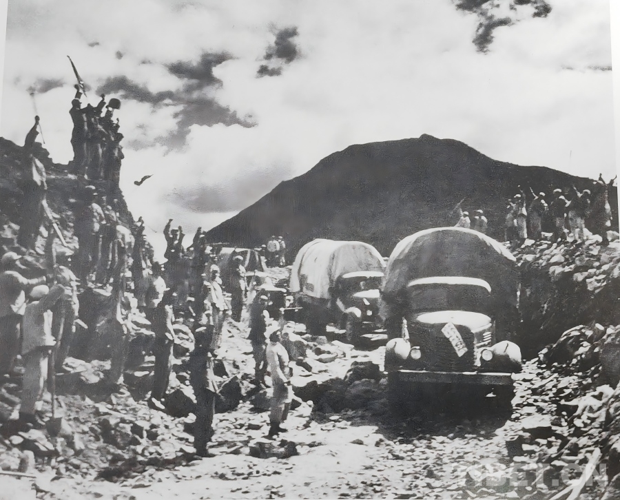 1951年10月,人民解放軍正式進(jìn)駐拉薩,隨著各項(xiàng)工作穩(wěn)步推進(jìn),局勢(shì)趨于穩(wěn)定。西藏工委、西藏軍區(qū)同西藏地方政府協(xié)商加快修建康藏公路的問題,于1952年在拉薩成立第一工程局(后改為第一施工局),1953年1月筑路委員會(huì)成立,下設(shè)西線筑路指揮部。進(jìn)藏部隊(duì)、地方干部與各族民工(西線筑路大軍)從拉薩出發(fā),先打通拉薩河南岸至墨竹工卡的山路,再頂著米拉山口的暴風(fēng)雪鋪筑路基,一點(diǎn)點(diǎn)將公路向著巴河的方向延伸。兩支筑路大軍隔著雪山峽谷,卻以同樣的堅(jiān)韌,在高原上刻下屬于中國(guó)人的英勇無畏!