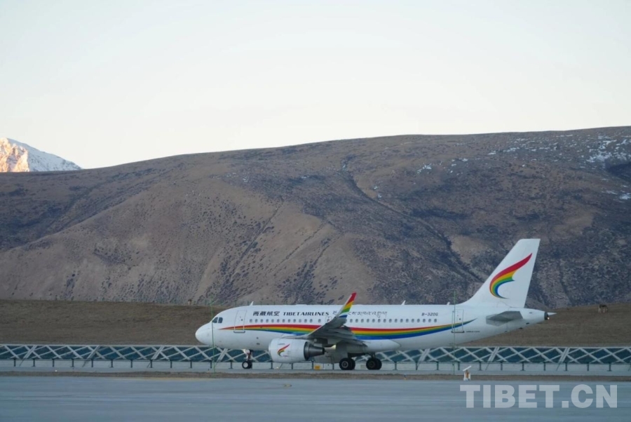 圖為10月20日西藏航空TV9705航班降落在阿里普蘭機場