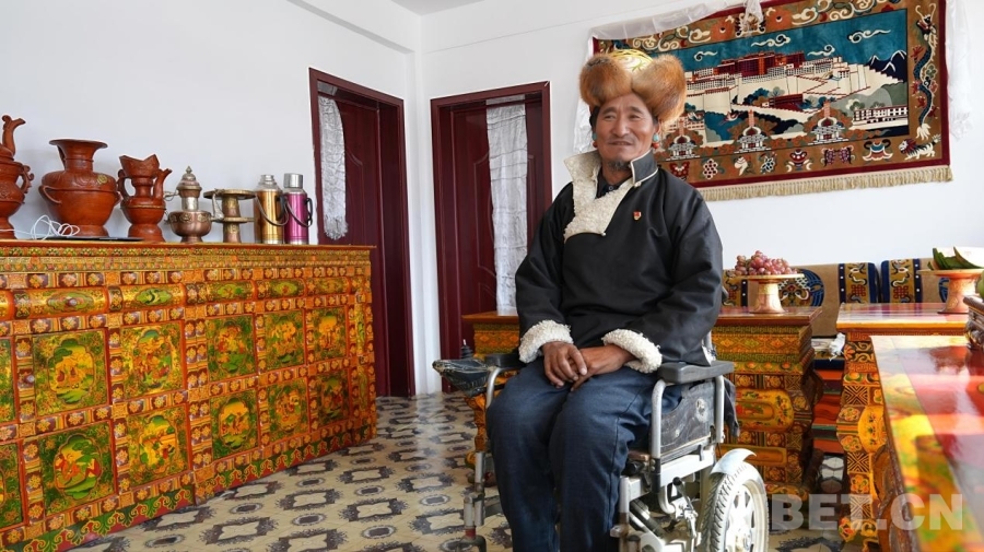達(dá)桑曾是措布村的干部,十年前因干農(nóng)活不慎摔倒導(dǎo)致行動(dòng)不便,需要依靠輪椅出行,但他作為一名共產(chǎn)黨員的初心始終未改?!拔液芟霝榇蠹易鳇c(diǎn)事,但現(xiàn)在身體情況不允許了?!弊谳喴紊系倪_(dá)桑語(yǔ)氣中帶著遺憾。在災(zāi)后重建期間,他每天都堅(jiān)持到工地,默默關(guān)注施工的每個(gè)細(xì)節(jié)?!拔译m然幫不上忙,但要親眼看著房子建起來(lái)。工人們?nèi)找冠s工,用的材料都是頂好的,他們真的太辛苦了?!边@份“全程見(jiàn)證”的堅(jiān)守,正是這位老黨員表達(dá)責(zé)任與關(guān)切的深情方式。