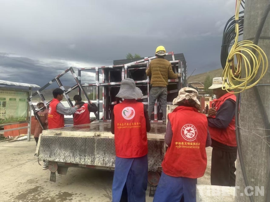 圖為志愿服務(wù)隊員們在災(zāi)后重建一線
