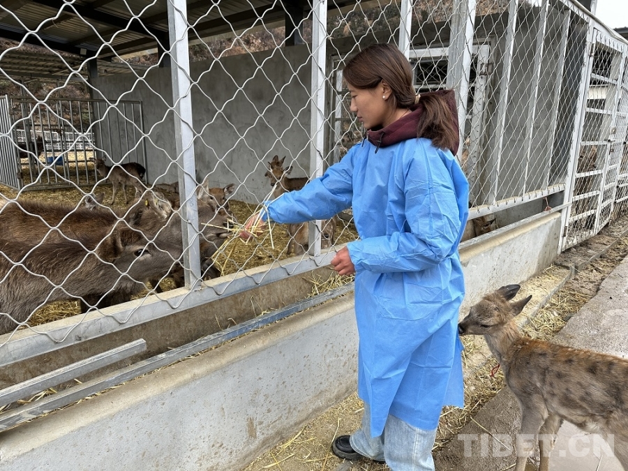 格桑卓姆,一位2003年出生的本地姑娘,今年7月剛從西藏農(nóng)牧大學(xué)動(dòng)物科學(xué)專業(yè)畢業(yè),如今在養(yǎng)殖場負(fù)責(zé)鹿的日常管理?!疤貏e感謝黨和政府給我們這么好的機(jī)會(huì),就在自己家門口就業(yè),比較方便?!备裆W磕返哪樕涎笠缰鴿M足的笑容。她的家就在離養(yǎng)殖場不遠(yuǎn)的加興村。