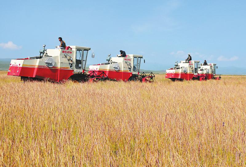 機械化采收。(圖片由紅原縣委宣傳部提供)