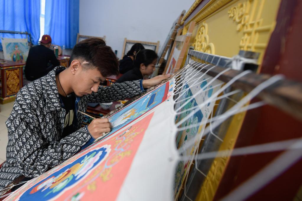 唐卡是藏族文化中獨具特色的繪畫藝術(shù)形式,具有鮮明的民族特點,被稱為藏族的“百科全書”,也是中華民族彌足珍貴的非物質(zhì)文化遺產(chǎn)。2001年,青海民族大學藝術(shù)學院創(chuàng)辦全國首個工藝美術(shù)(唐卡)專業(yè),將傳統(tǒng)民間藝術(shù)納入大學教學體系,實現(xiàn)從民間師徒傳承模式向?qū)W校教學模式的轉(zhuǎn)變,為傳統(tǒng)民族文化培養(yǎng)人才,更好地傳承非遺文化。