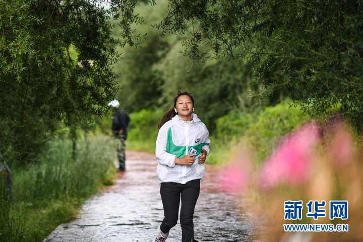 8月7日,市民在玉樹市巴塘河國家濕地公園晨跑。新華社記者 吳剛 攝