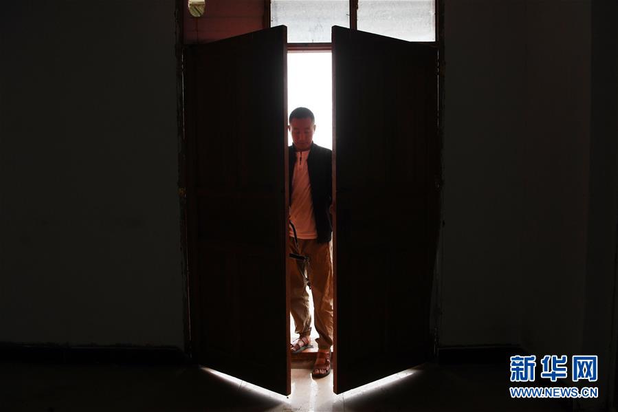 在舟曲縣果耶鎮(zhèn)虎家梁村,虎吾成搬完物品后關(guān)閉屋門(8月5日攝)。新華社記者 范培珅 攝