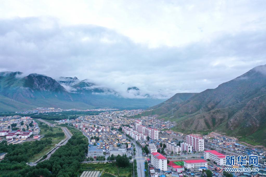 這是8月7日拍攝的玉樹(shù)市城區(qū)(無(wú)人機(jī)照片)。新華社記者 吳剛 攝