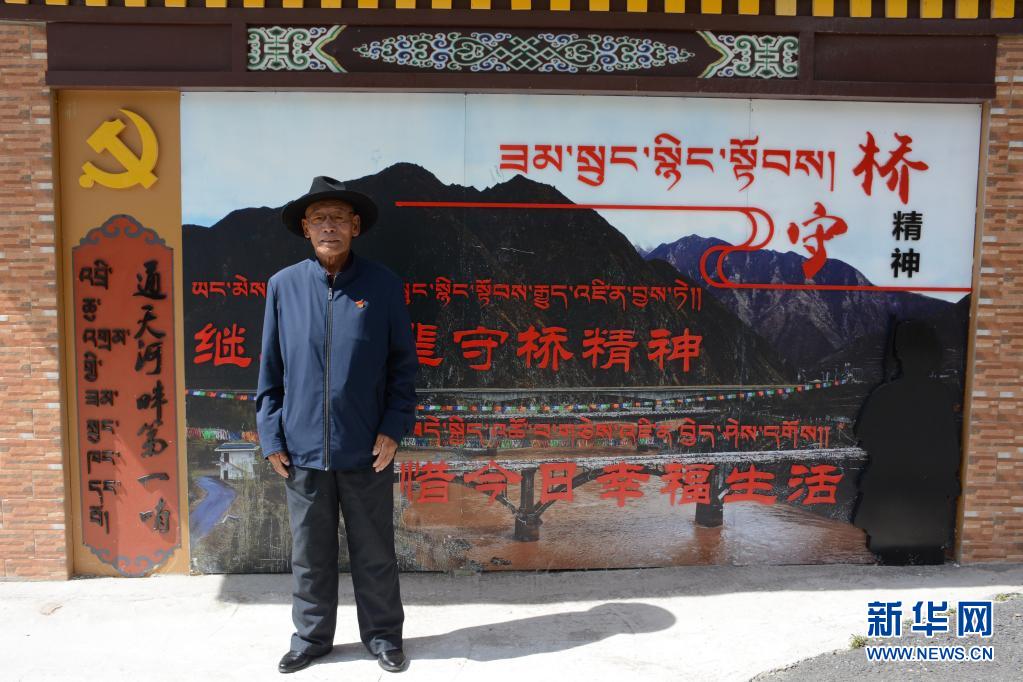 這是在玉樹(shù)藏族自治州稱(chēng)多縣歇武鎮(zhèn)直門(mén)達(dá)通天河渡口拍攝的守橋班老班長(zhǎng)元丁(7月25日攝)。新華社記者 柳澤興 攝