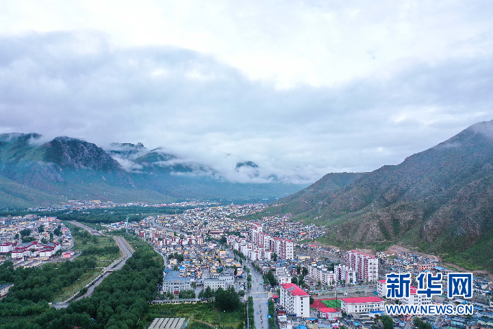 這是2021年8月7日拍攝的玉樹(shù)市城區(qū)(無(wú)人機(jī)照片) 新華社記者 吳剛 攝