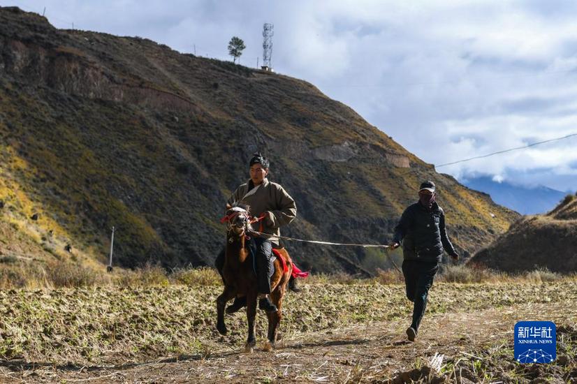甘孜縣來馬鎮(zhèn)格通村村民在馴化從合作社購買的幼馬(10月25日攝)。新華社記者 王曦 攝
