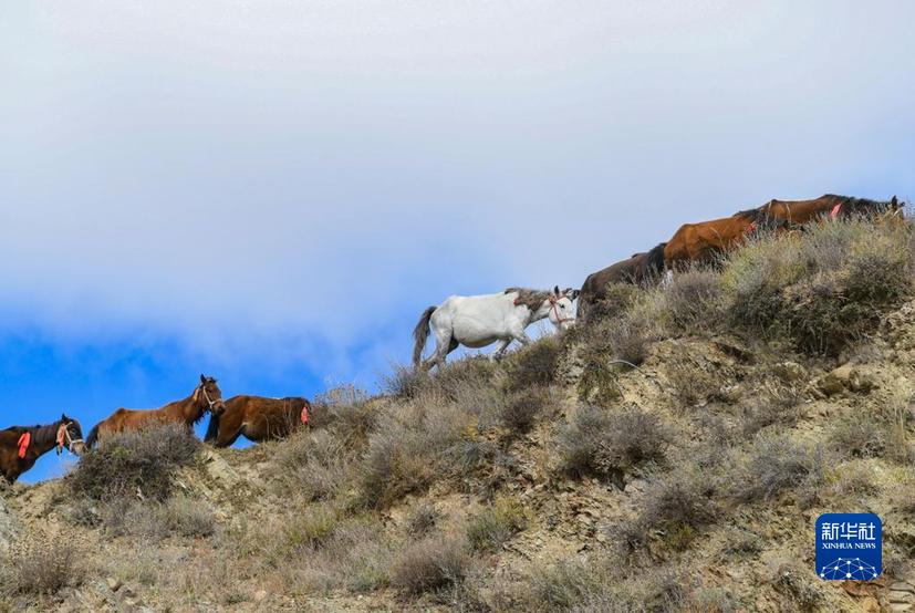 在甘孜縣來馬鎮(zhèn)格通村,馬群前往草場(10月25日攝)。新華社記者 王曦 攝