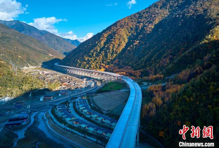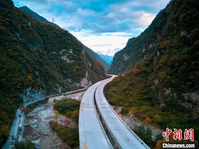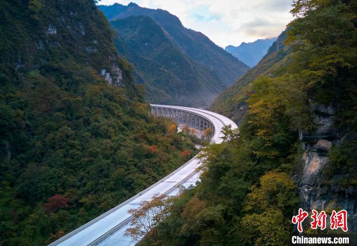 深秋時(shí)節(jié),四川省綿陽市平武縣紅葉滿山,層林盡染,仿佛打翻的調(diào)色盤,正在建設(shè)的九綿高速宛若一條玉帶穿行其中,想象通車后駕車行駛在這條高速上,如遨游在五彩斑斕的彩林畫廊中一般,讓人心曠神怡。