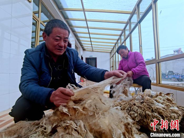 圖為楊永良挑選綿羊毛。李雋 攝