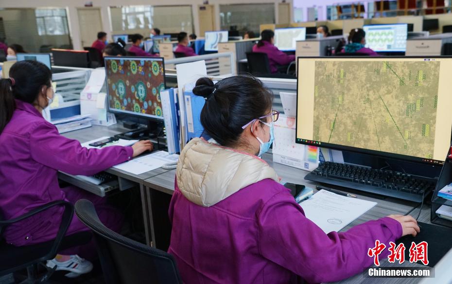 圖為設(shè)計(jì)師正在設(shè)計(jì)藏毯紋樣。馬銘言 攝