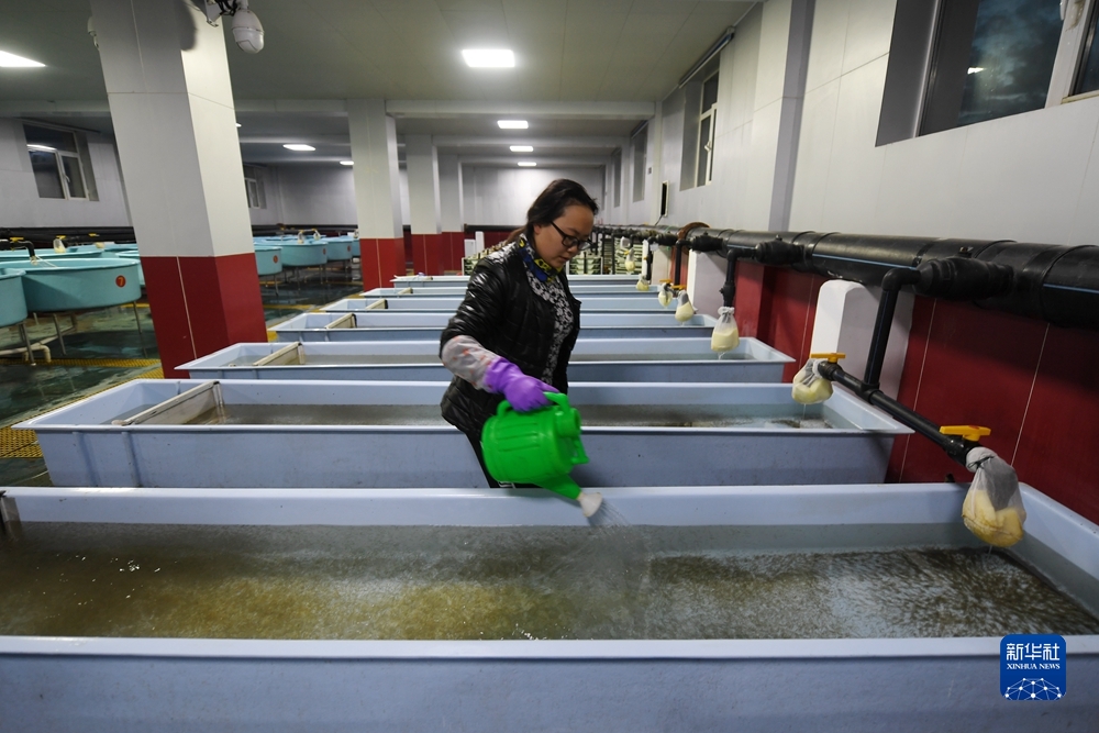 6月29日,在青海湖裸鯉沙柳河泉吉河增殖實(shí)驗(yàn)站,工作人員查看圓形破膜缸中湟魚受精卵破膜情況。新華社記者 范培珅 攝