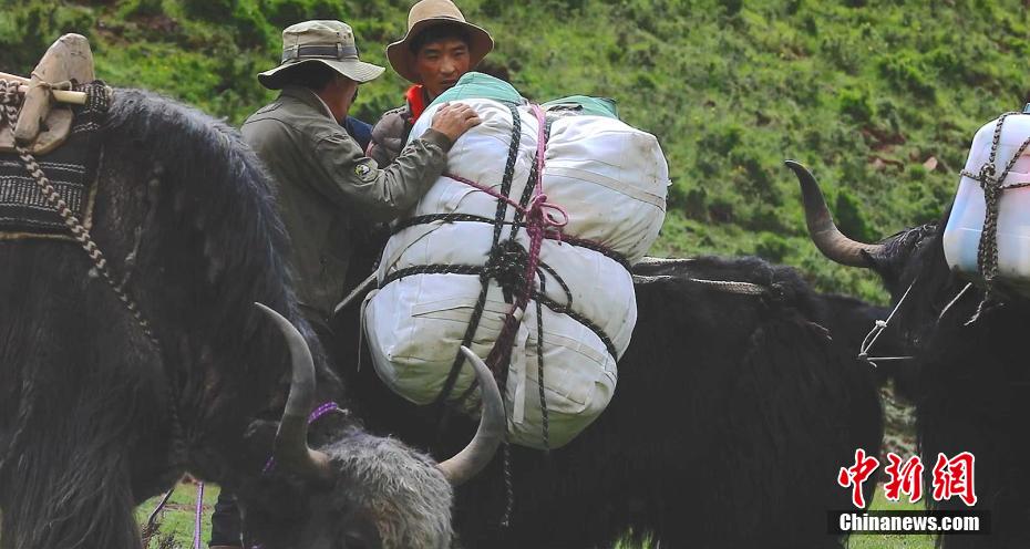 圖為牧民讓牦牛背上“行李”轉(zhuǎn)場(chǎng)。 仁青多杰 攝