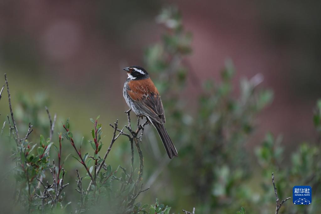 這是在昂賽大峽谷內(nèi)拍攝的藏鹀(8月4日攝)。新華社 齊凱 攝