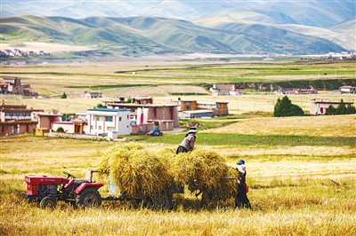 秋天的平原、河谷、山野里,大片大片的青稞翻滾著麥浪,金黃耀眼,如同一塊塊黃色、喜悅、飄飛著麥香的金色云朵,綿延到天與地的盡頭。農(nóng)民在麥田間忙著彎腰、揮鐮、系起青稞束,紅臉蛋綻滿喜悅,向大地和來往的人訴說著大自然的饋贈(zèng)。高原上人們臉上的“高原紅”是地理、氣候環(huán)境等造成的面部紅血絲,但沒有人會(huì)否認(rèn),這也是一種勤勞的美。在阿壩縣,這種勤勞與汗水澆灌出累累碩果:青稞、蔬菜、中藥材、牧草等基地規(guī)模達(dá)12.3萬畝,年接待游客近100萬人次,農(nóng)村居民人均可支配收入增長(zhǎng)9.7%……
