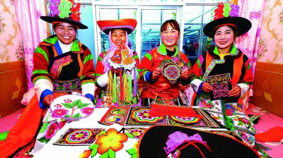 青海土族婦女“繡”出好生活。張海東攝/光明圖片