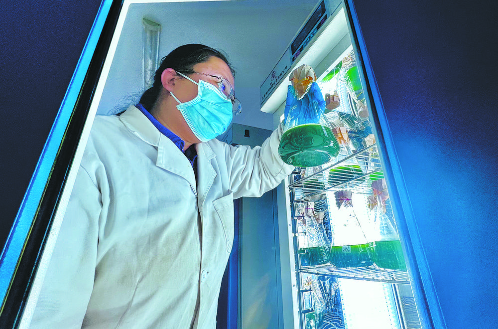 技術(shù)人員正在觀察小球藻生長情況。