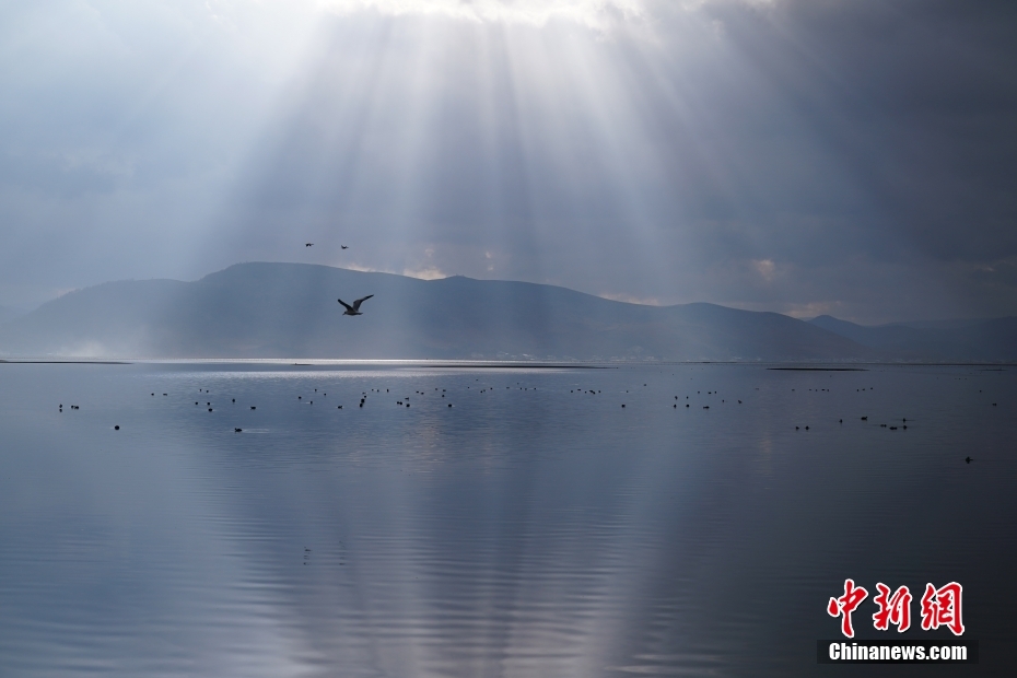 2月21日,候鳥(niǎo)在納帕海覓食嬉水。中新社記者 劉冉陽(yáng) 攝