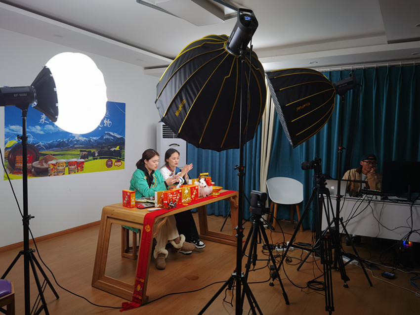 “這是吃天然草、喝雪山水的牦牛做成的多種口味肉干,可滿足不同口味的消費(fèi)者;這是我們老鄉(xiāng)每天早上都要打的酥油茶,通過(guò)改良做成了便攜式袋裝,用開(kāi)水沖服就可以喝上醇香的酥油茶……”3月19日,在理塘縣的“高原上”抖音直播間,主播賣(mài)力地推銷(xiāo)鵬飛牦牛肉干、密奇奇酥油茶等當(dāng)?shù)剞r(nóng)特產(chǎn)品。