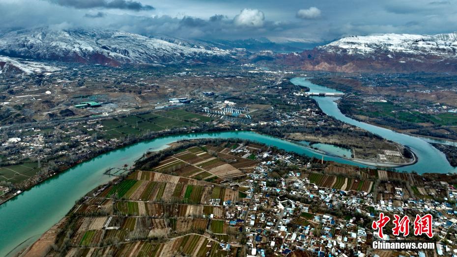 4月3日,結束“觀鳥季”不久的青海省化隆縣黃河谷地,杏花等果花漸次綻放,與遠山皚皚白雪、耕地返青麥苗以及翡翠般的黃河,勾勒一幅高原春日圖景。黃河流經化隆縣168公里,當地黃河水質清澈,氣候溫暖。圖為航拍青海省化隆縣境內的黃河。