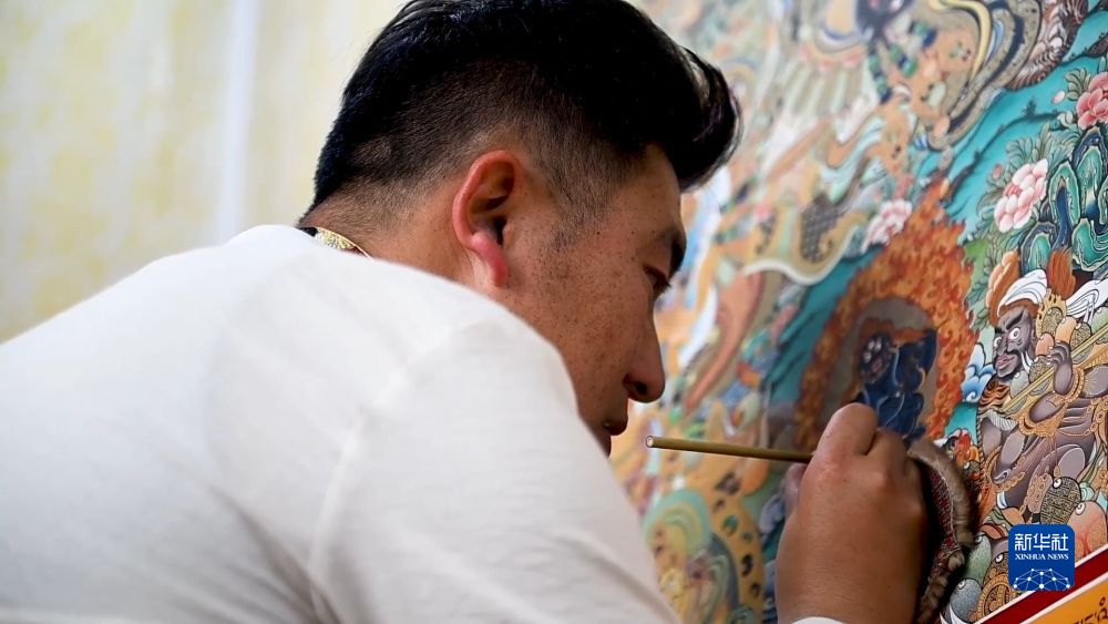打磨布面、研制畫料、著色、暈染、勾線……唐卡創(chuàng)作的每一個(gè)環(huán)節(jié)都考驗(yàn)著畫師的專注力和耐力。