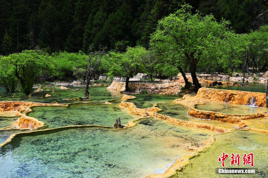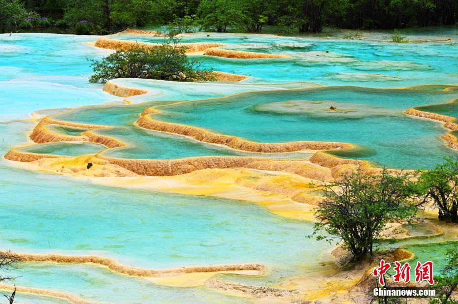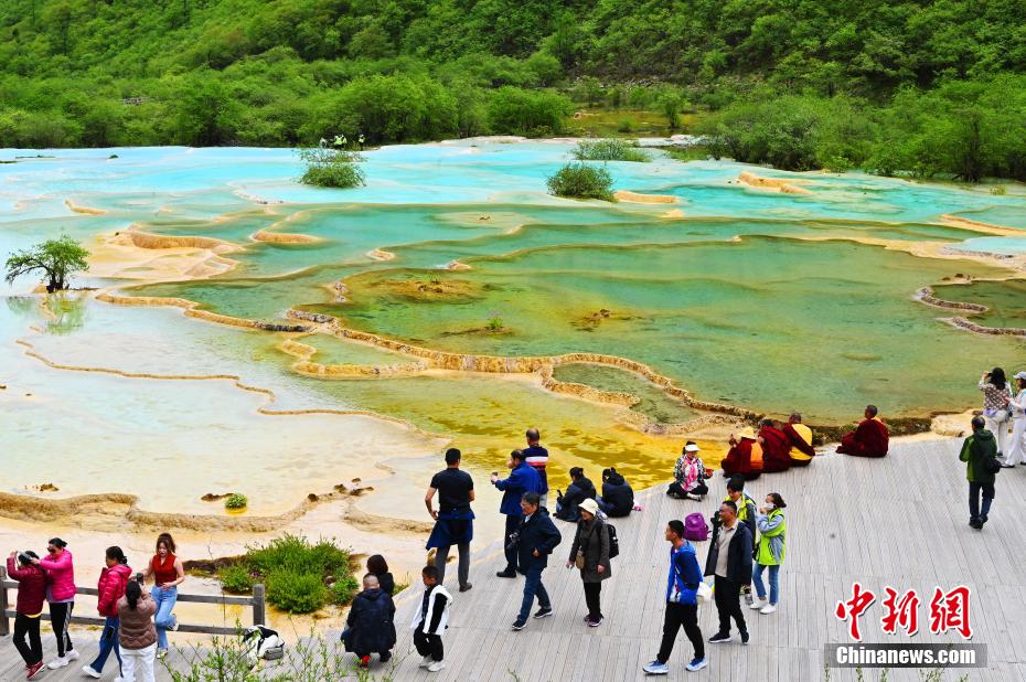 6月19日,初夏時(shí)節(jié),世界自然遺產(chǎn)黃龍風(fēng)景名勝區(qū)風(fēng)景如畫(huà),吸引眾多游客觀光游玩。