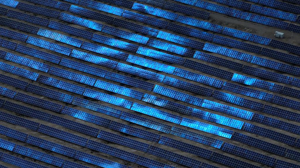 位于長江源區(qū)的柴達木盆地,荒涼的戈壁灘一望無際。在柴達木盆地中部的青海省海西蒙古族藏族自治州格爾木市,一片片深藍色的“光伏海洋”在陽光下閃耀著光芒。